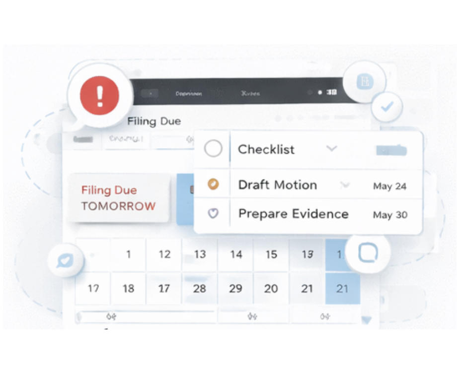 Assign tasks, track responsibilities, and receive timely alerts for hearings, filings, and deadlines—so critical dates are anticipated, not chased.